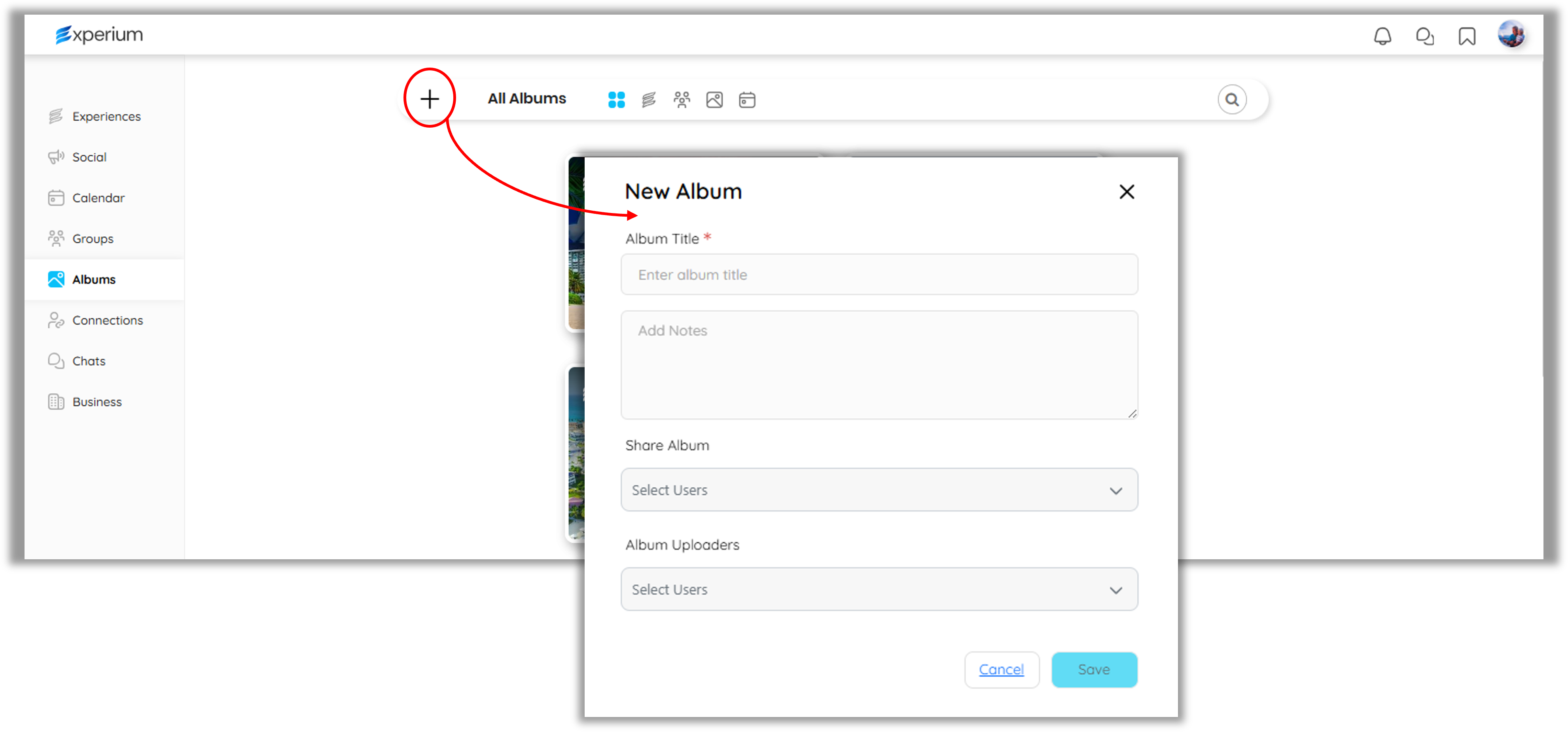 - Open your Experience or Group and then click on the Album icon at the bottom.