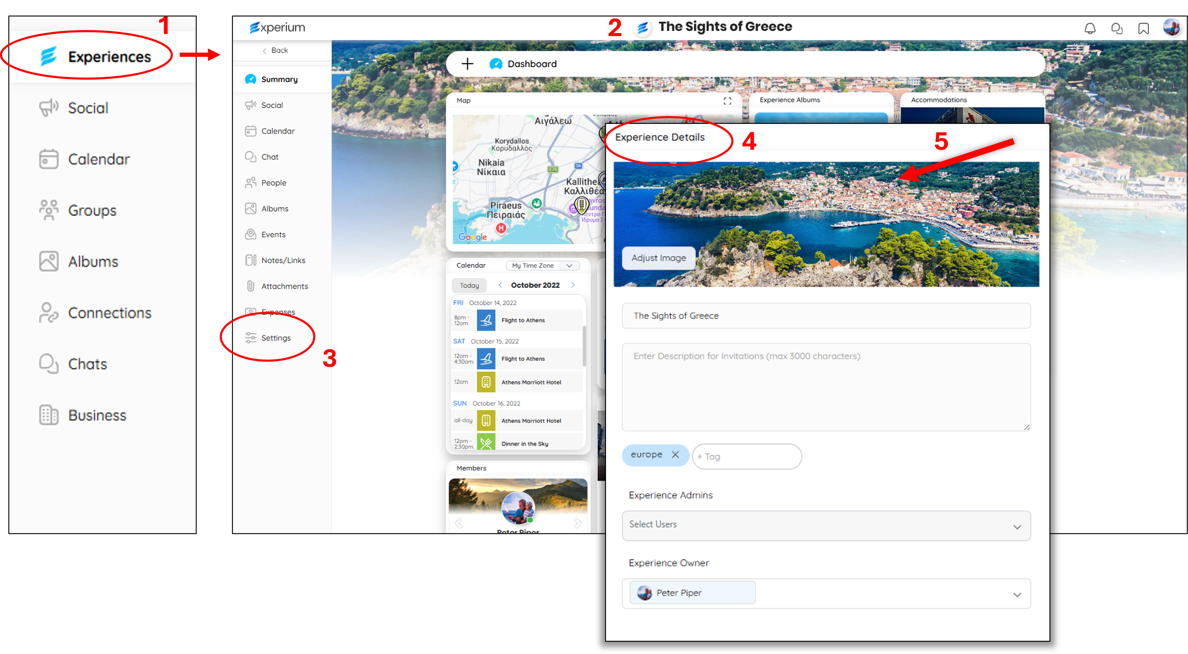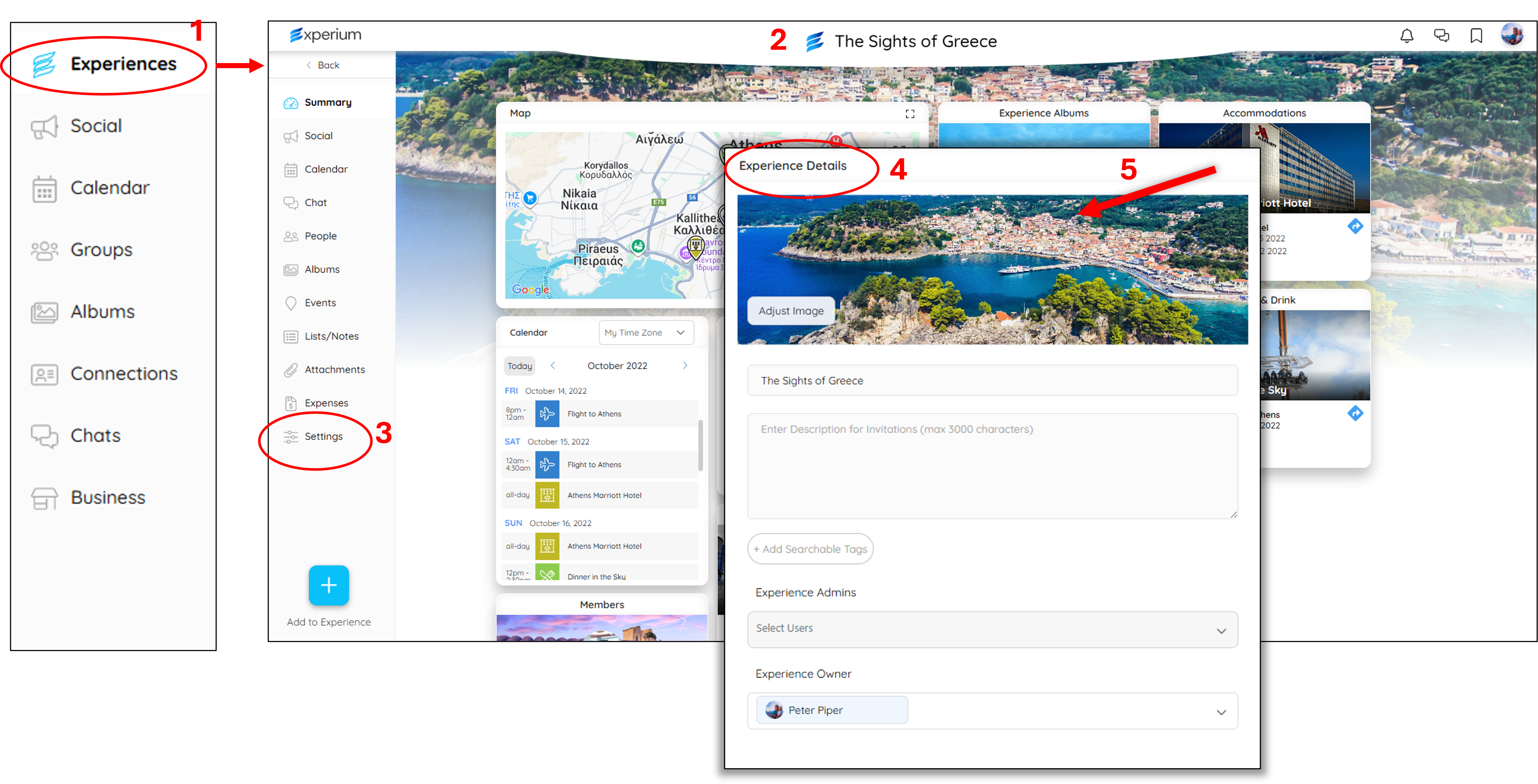 - In the Experience Details Popup (4), click in the image (5) to adjust the image and/or below that to change the title of the Experience.