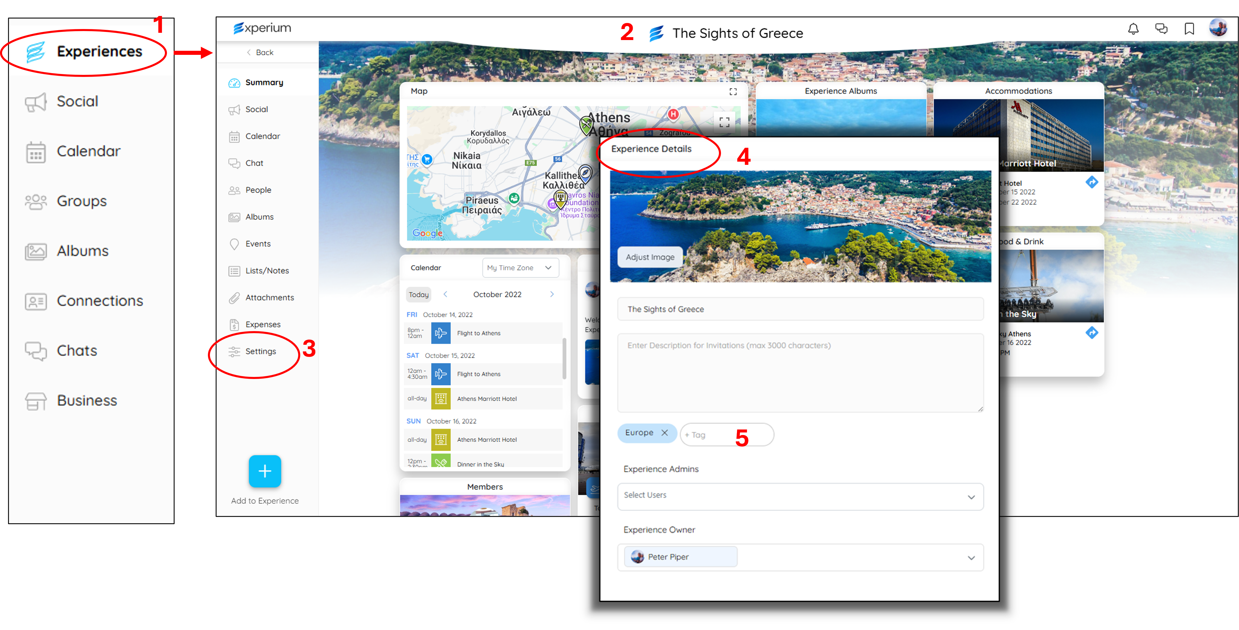 Each Experience contains the following tabs: Summary: A snapshot of the experience...contain scrolling tiles of all the elements. Social: A dedicated social board just for the members of this Experience. Chat: A dedicated chat channel just for the ...